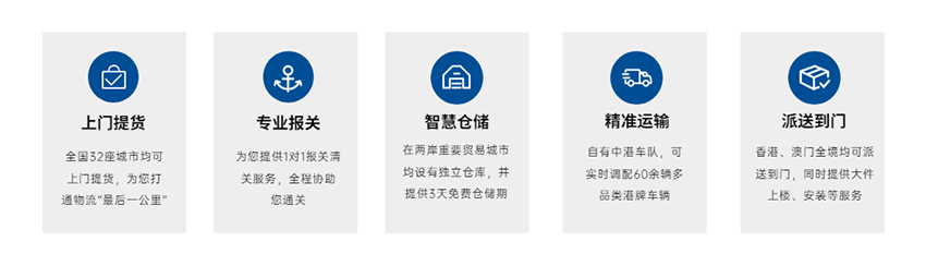 報關(guān)服務(wù) | 合同承運 | 代墊雜費 | 裝卸服務(wù) | 派送上門