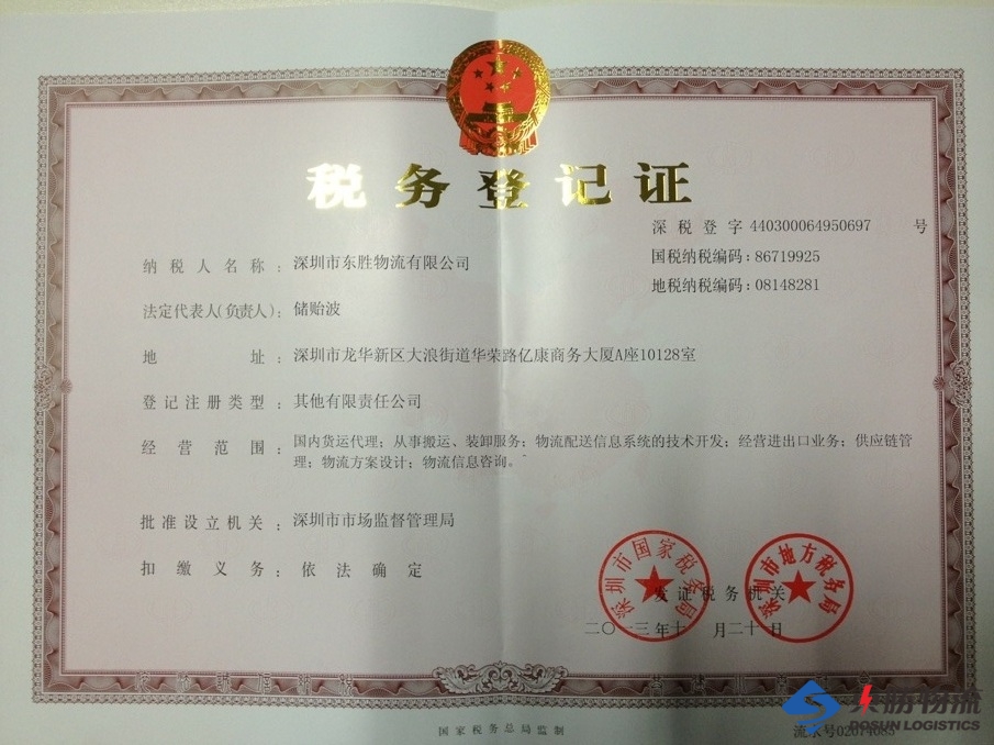 東勝物流稅務(wù)登記證